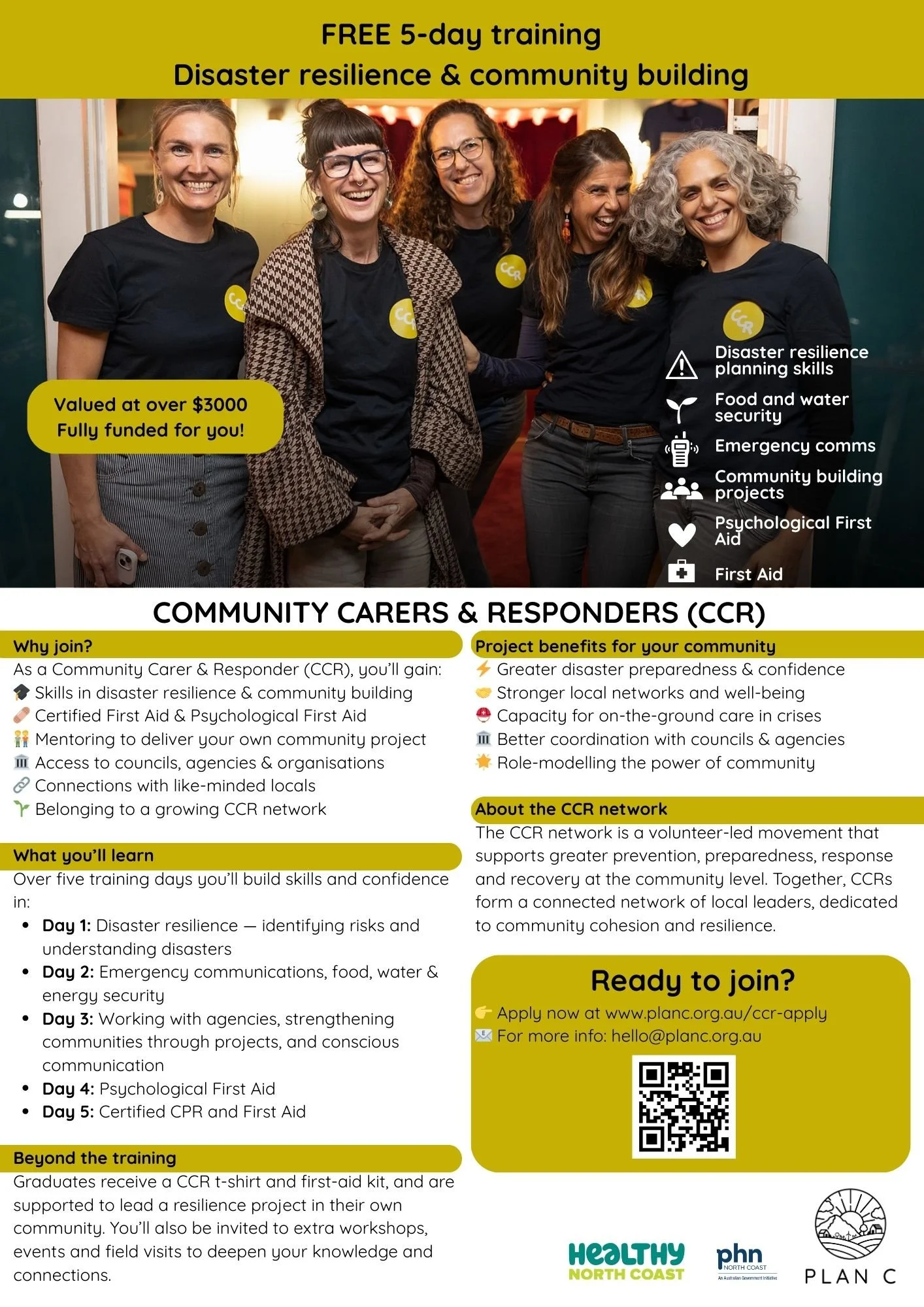 This weekend, our Byron Community Carers & Responders (CCR) participants will complete their final step — First Aid training with Pacific Coast First Aid, our fantastic local provider. We’re so proud of this group and the energy they’ve brought to the program.